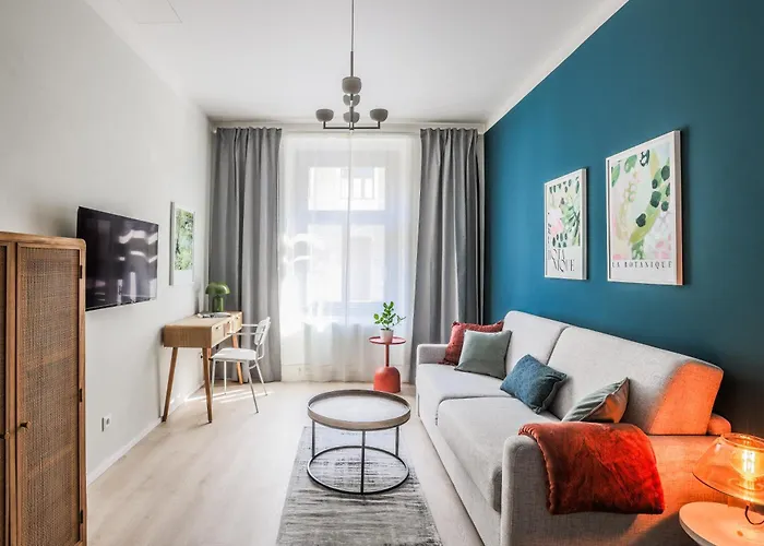 Az apartman olyan önellátási lehetőségeket biztosít, mint az elektromos vízforraló, hűtő és konyhai edények, így a vendégek önállóan készíthetik el saját ételeiket. A Vaclav Havel Prague repülőtér autóval 20 perc alatt elérhető.